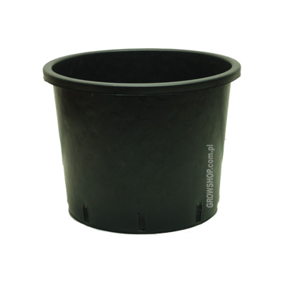 Bardzo stabilna okrągła doniczka wykonana ze sztywnego tworzywa sztucznego o pojemności 12 litrów.