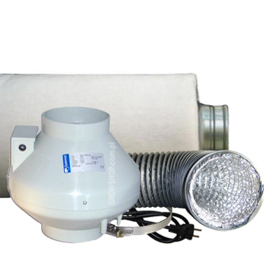 W skład zestawu wchodzi: - wentylator z regulacją 230/360 m³/h, fi 125 mm - aktywny filtr węglowy Economy Line 300 m³/h, 125 mm - przewód wentylacyjny 3,3 m, 127 mm - 2 opaski zaciskowe - kabel z wtyczką |